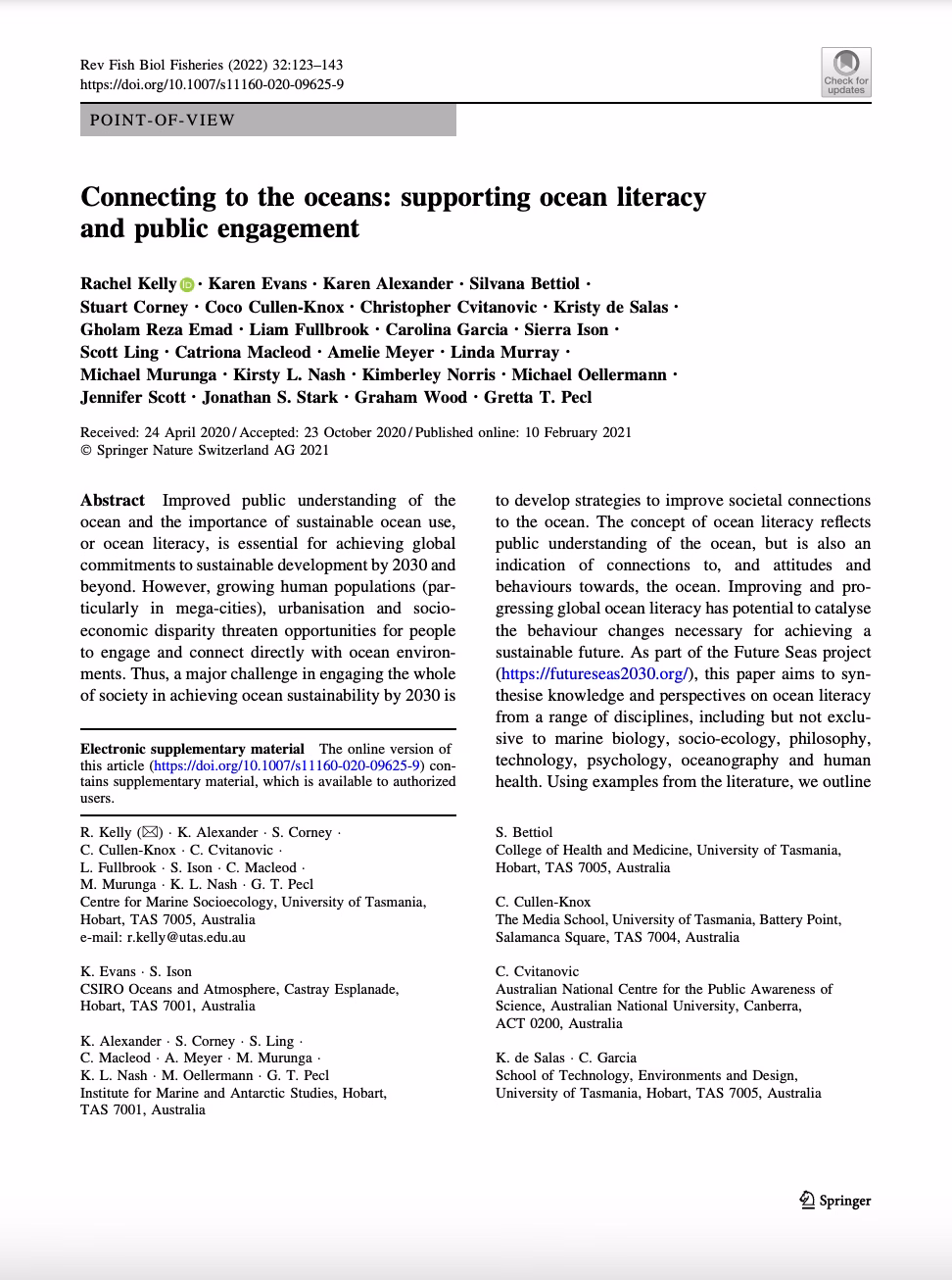 Connecting to the oceans: Supporting ocean literacy and public engagement