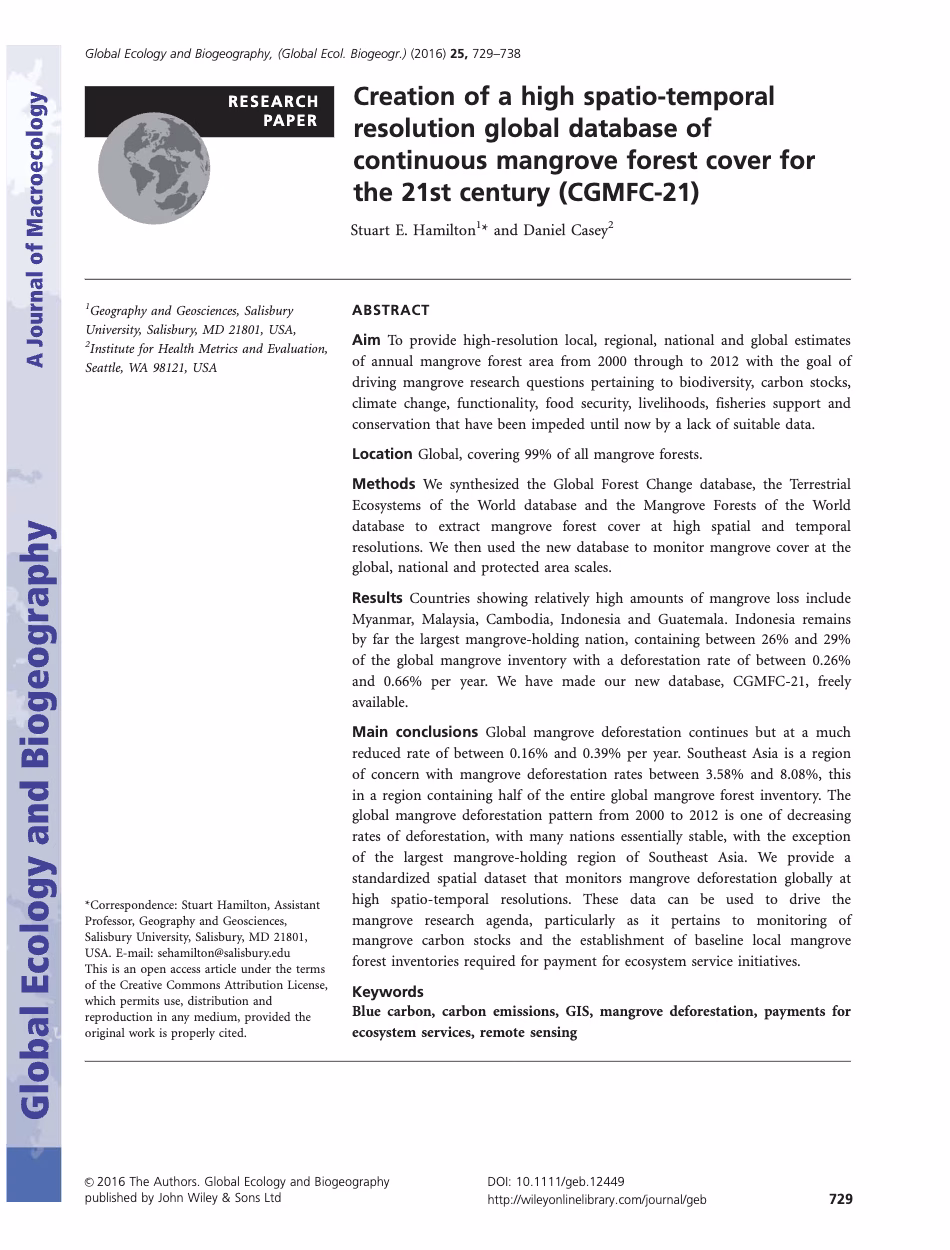 Creation of a High Spatio-temporal Resolution Global Database of Continuous Mangrove Forest Cover for the 21st Century