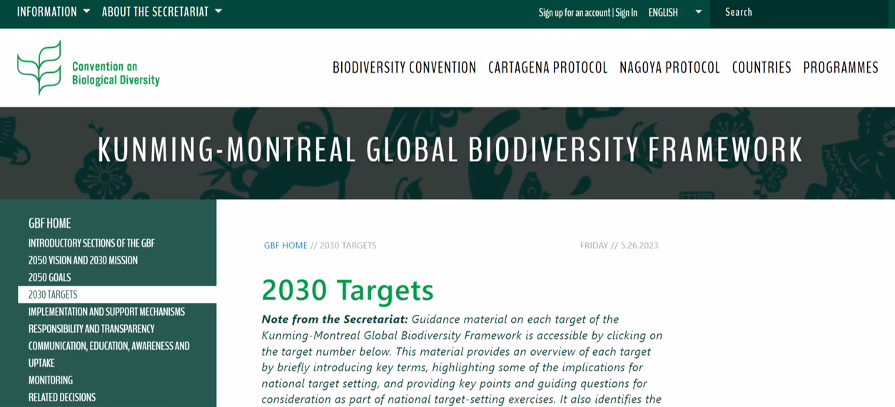 The Kunming-Montreal Global Biodiversity Framework has 23 action-oriented global targets for urgent action over the decade to 2030. The actions set out in each target need to be initiated immediately and completed by 2030. Together, the results will enable achievement towards the outcome-oriented goals for 2050.