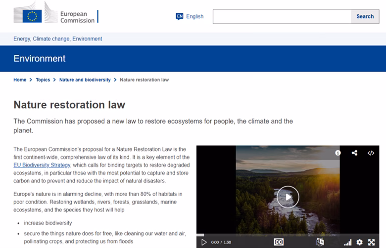 The European Commission’s proposal for a Nature Restoration Law is the first continent-wide, comprehensive law of its kind. It is a key element of the EU Biodiversity Strategy, which calls for binding targets to restore degraded ecosystems, in particular those with the most potential to capture and store carbon and to prevent and reduce the impact of natural disasters.